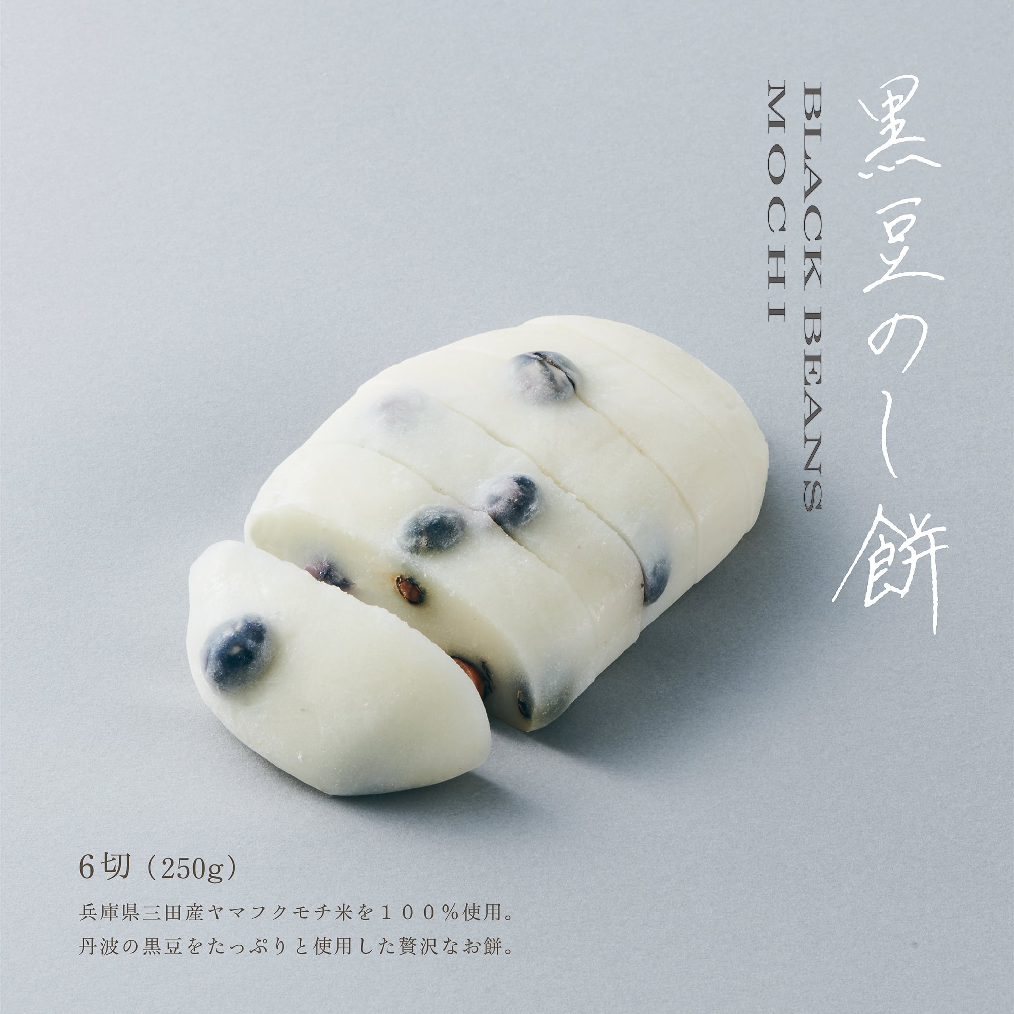 兵庫県三田産ヤマフクもち米を使用し、丹波黒豆をたっぷりと使用した黒豆入りのし餅です。